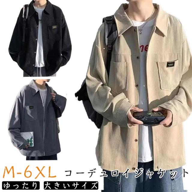 シャツジャケット カジュアルシャツ ジャケット 無地 コーデュロイ 厚手 ブルゾン 長袖 オーバーサイズ メンズ カジュアルシャツ ゆったり コーデュロイ シャツ 長袖シャツ 6L 大きいサイズ コーデュロイシャツ