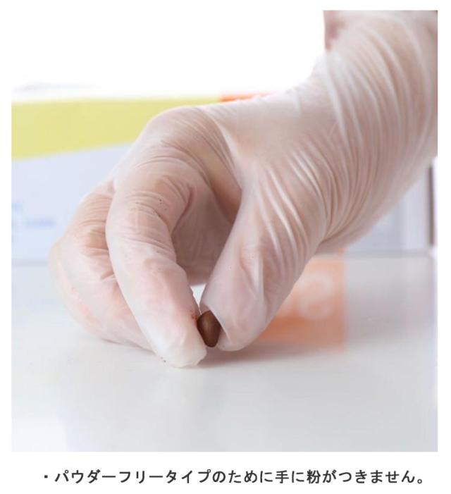 | 【100枚入り】 ・手によくフィットし、素手感覚でご使用できます。 ・パウダーフリータイプのために手に粉がつきません。 ・ぬぎはめしやすいように手袋内面に加工を施してます。ラテックスアレルギーの元となるタンパク質を含みません。塩化ビニル製のため、天然ゴム製の手袋に比べて、洗剤や油に対して耐久性があります。 ・着用したままスマートフォンやタブレット操作OK | |