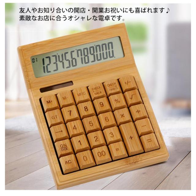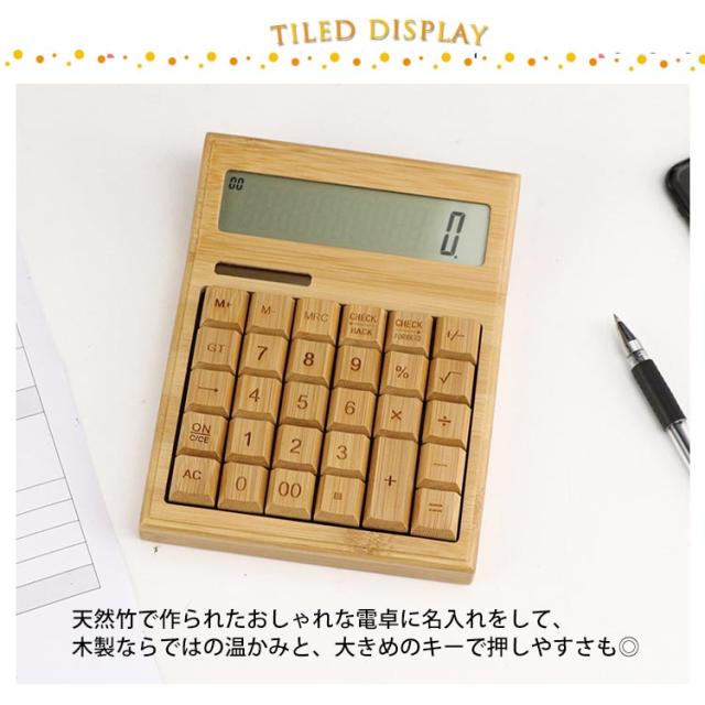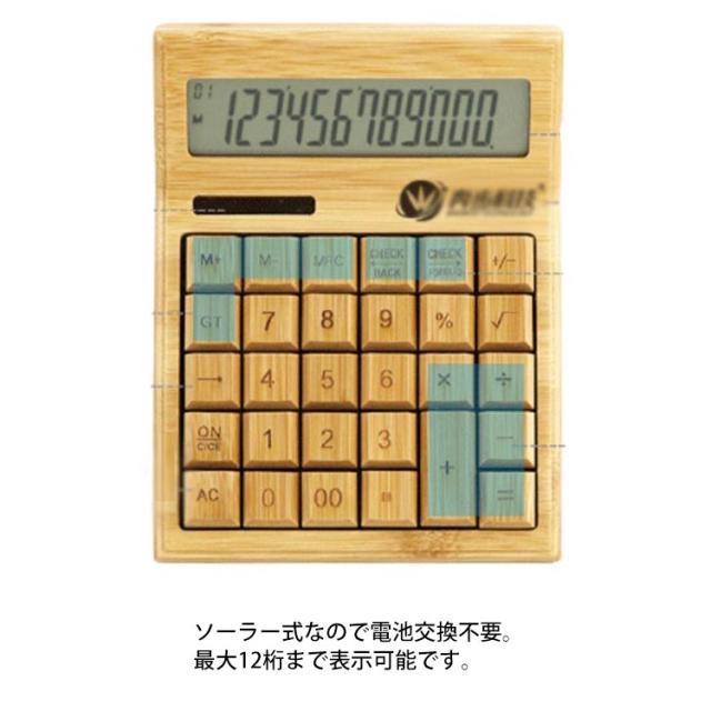 電子計算機 竹製 ソーラー 電卓 かわいい 計算機 12桁 大きい 丸ボタン 大型LCDディスプレイ 滑り止め 静音 電卓 おしゃれ 持ち運び便利 簿記
