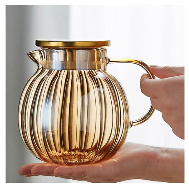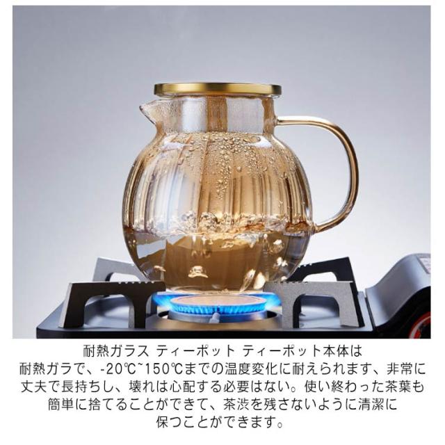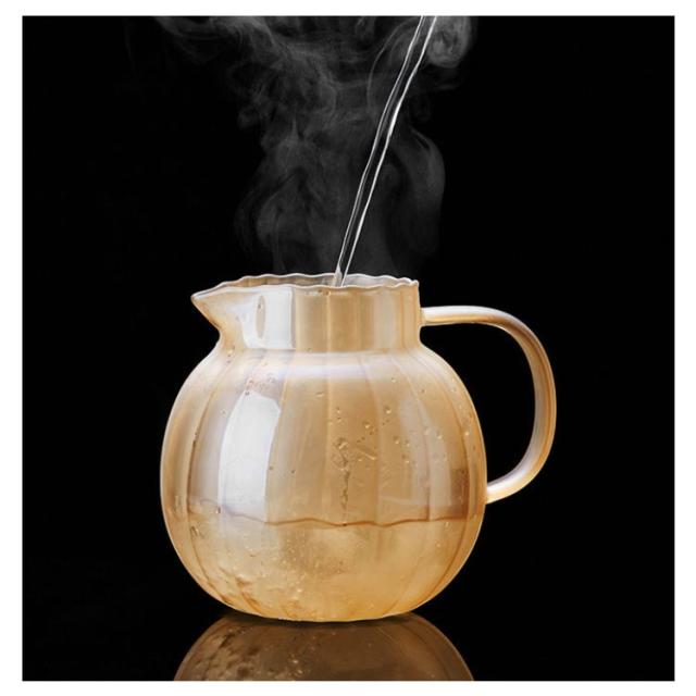 ティーポット ガラス製ポット カボチャ 1300ml 可愛い 直火対応 耐熱ガラス クリア プレゼント リーフティー カボチャ 工芸茶 紅茶 大容量 カボチャデザイン ガラス 急須 花茶 ティーフォーツー 家庭用 お店用 透明 引っ越し祝い ギフト