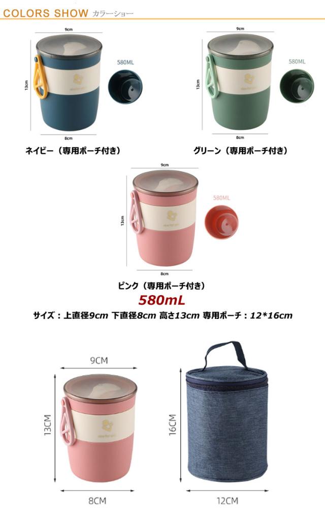 スープカップ 電子レンジ対応 丼型 スープジャー スープ缶 弁当箱 大容量 ランチジャー 580ML お弁当箱 ランチボックス ランチ缶 丼ぶり型弁当箱 男女兼用 専用ポーチ付き お弁当