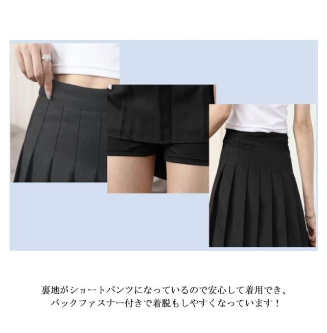 | XS-3XL!オールシーズン着まわせるミニ丈のプリーツスカート シンプルなデザインなので、トレンドに左右されず着回しが効きます。 裾が程よく広がり、ウエスト周りのシルエットが綺麗に見えるデザイン。 裏地がショートパンツになっているので安心して着用でき、バックファスナー付きで着脱もしやすくなっています! 普段ミニスカートを履かない方でも、挑戦しやすい仕様になってます。 | |