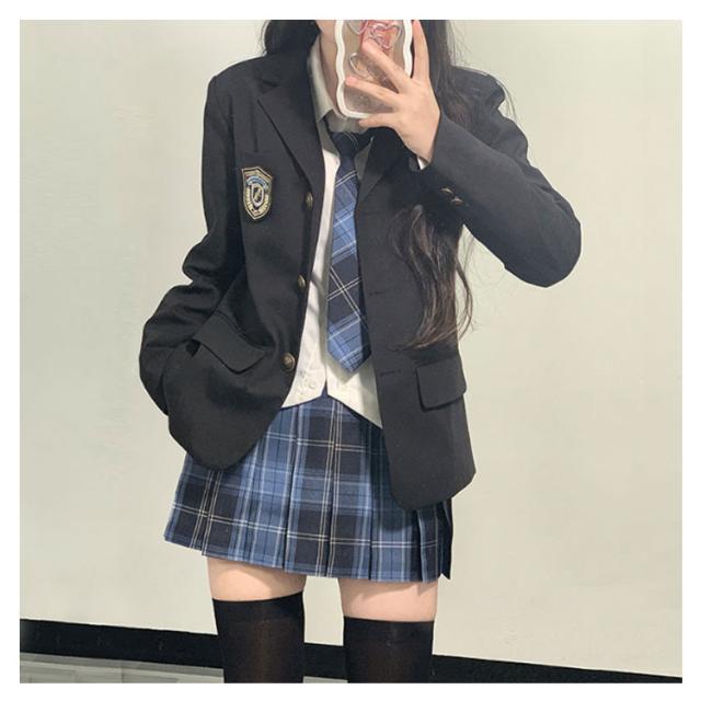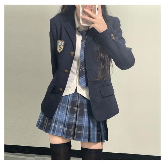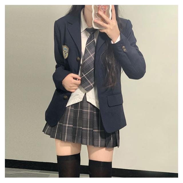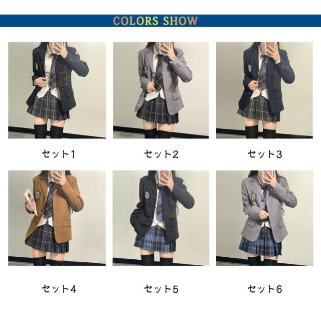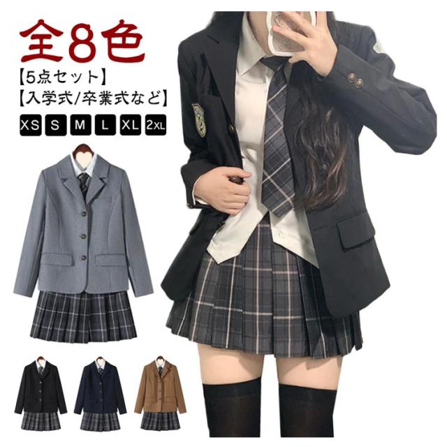 | 【5点セット】【XS〜2XL】【入学式/卒業式スーツ】【全8色】 5点セット:ジャケット+スカート+シャツ+ネクタイ+バッジ 入学式や卒業式などに適用中高生女の子のスーツ | |