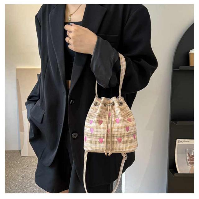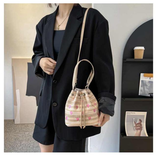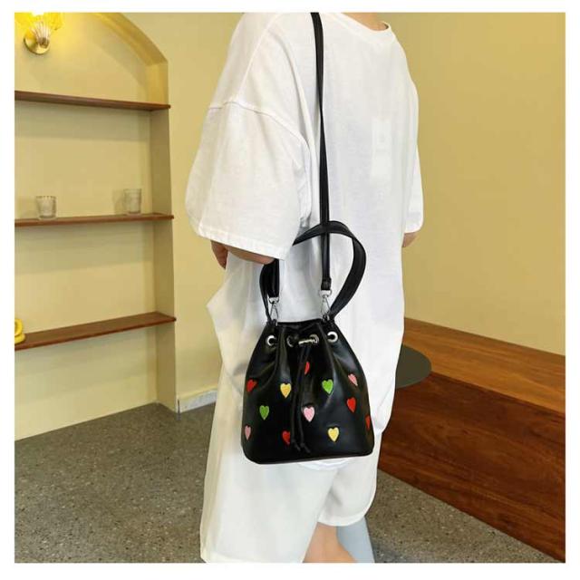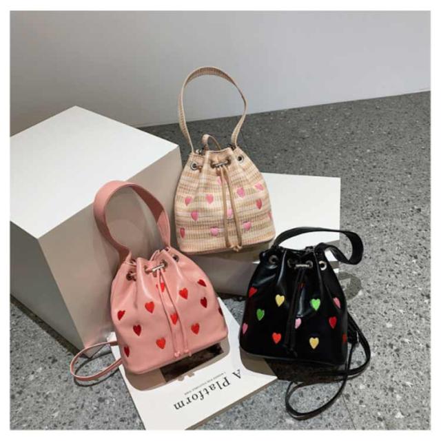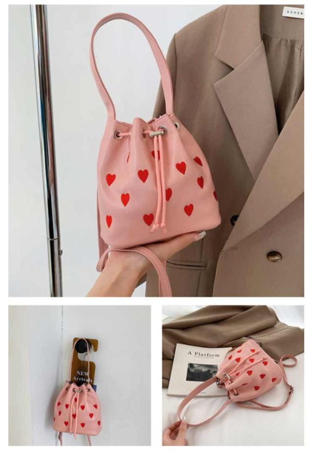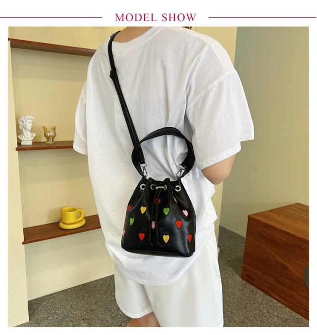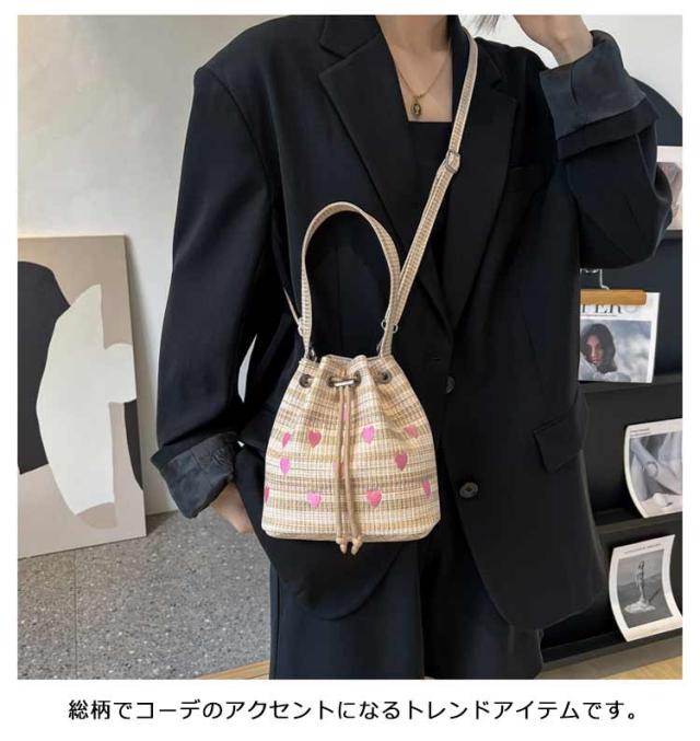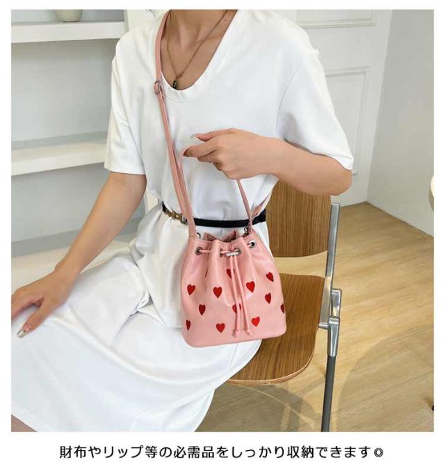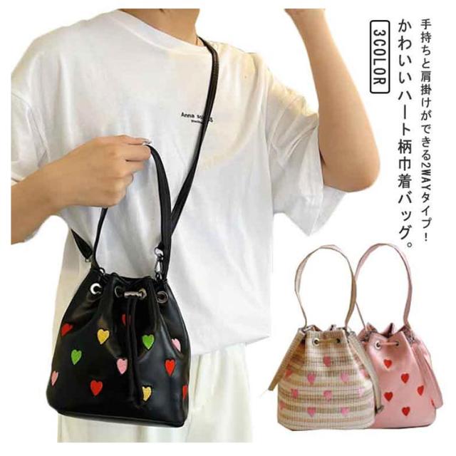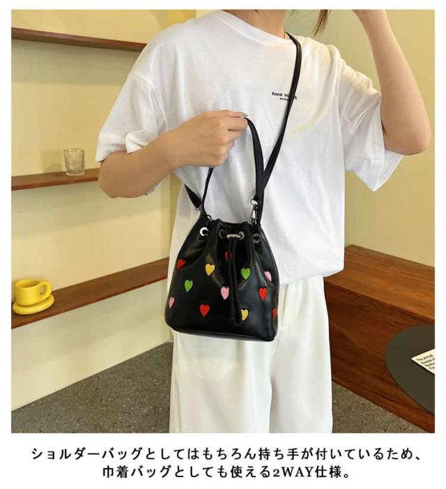 | 手持ちと肩掛けができる2WAYタイプ!かわいいハート柄巾着バッグ。 ショルダーバッグとしてはもちろん持ち手が付いているため、巾着バッグとしても使える2WAY仕様。 財布やリップ等の必需品をしっかり収納できます◎ 間口も広く用途によってさまざまなアイテムの持ち運びが可能&巾着紐によって中身が落ちないように安心収納◎ 総柄でコーデのアクセントになるトレンドアイテムです。 | |