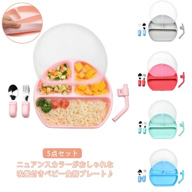 お皿 食器セット 5点セット 離乳食 ベビー食器セット ワンプレート シリコン 食器 お食事プレート ベビー食器 離乳食プレート 蓋付き 食洗機 吸盤付き 食器セット 赤ちゃん 育児 ベビー 皿 電子レンジ お出かけ 対応 食器セット 出産祝い ギフト