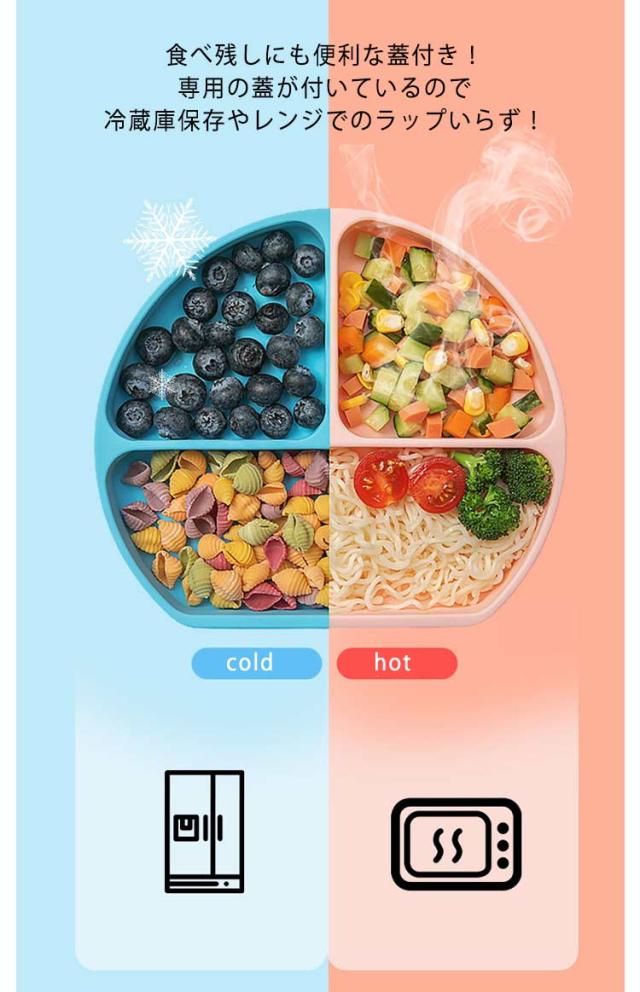 | ニュアンスカラーがおしゃれな吸盤付きベビー食器プレート♪ ベビーのお食事タイムに欠かせないシリコンプレート 。 汚れてもサッと洗うだけなので、毎日忙しいママにうれしいアイテムです! スタイリッシュでモダン、だけど可愛さもプラスしたおしゃれな北欧デザインです。 3つに仕切られて盛り付けしやすく便利に! 吸盤付きで机に固定でき、赤ちゃんのお皿ひっくり返しを防止します。 食品グレードのシリコンを使用しており、安心です。 離乳食期から幼児期まで長くお使いいただけます。 出産祝いなどのギフト、お子様のクリスマス、誕生日などのプレゼントにいかがでしょうか? 食べ残しにも便利な蓋付き! 専用の蓋が付いているので冷蔵庫保存やレンジでのラップいらず! | |