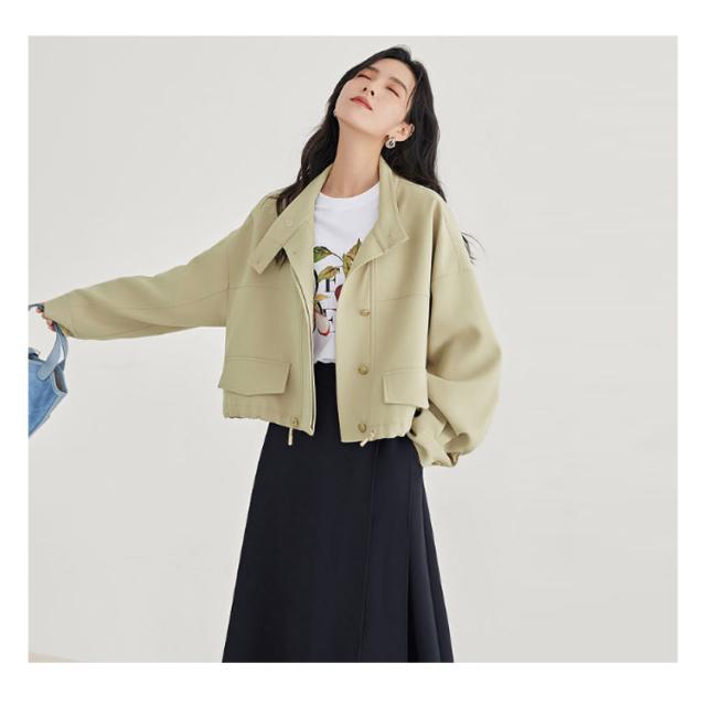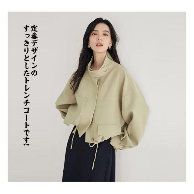 ドロスト アウター 春コート 襟付き レディース 上着 ショートコート 羽織り 春アウター トレンチコート スプリングコート 春 コート ジャケット 長袖 ショート 長そで 体型カバー ゆったり お洒落 アウトドア ビジネス 卒業式 きれいめ