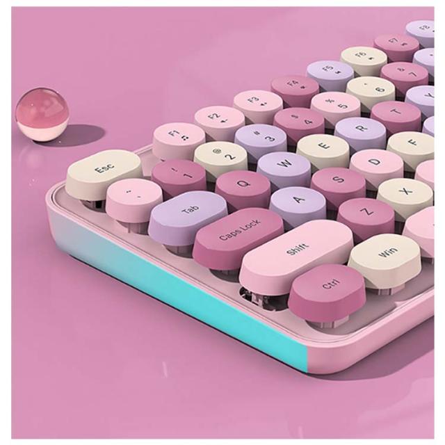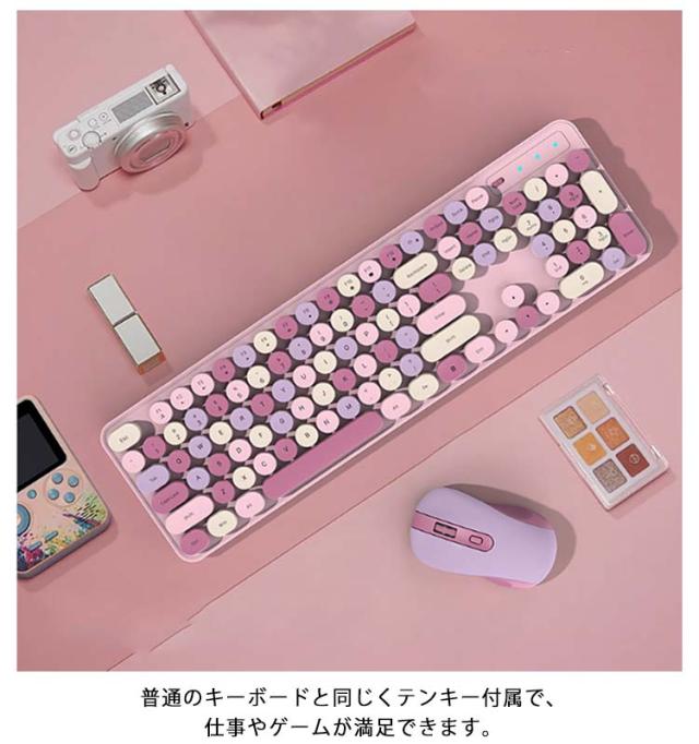 テンキー付き 無線 ワイヤレスキーボード ワイヤレスキーボード マウスセット 2.4GHz キーボード レトロ 円形キー 可愛い レディース タイプライターキーボード 大型キーボード 無線マウス ワイヤレスマウス