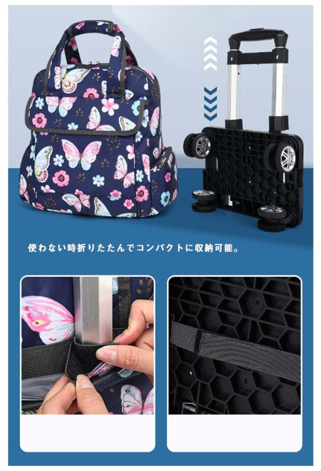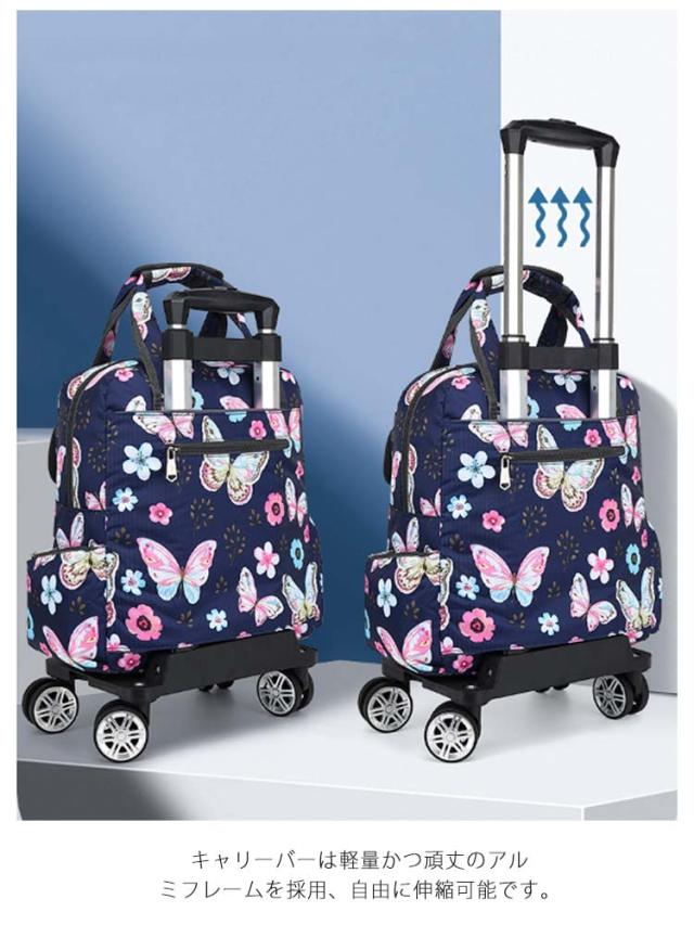 | リュック単品としても使えるキャリーバッグ。 撥水加工されたオックスフォード生地を使用し、傷や摩耗に強い、霧や雨の日にも対応できる。 キャリーバーは軽量かつ頑丈のアルミフレームを採用、自由に伸縮可能です。 使わない時折りたたんでコンパクトに収納可能。 立体的で大容量のデザインは、服、財布、スマホや化粧品などを収納することができる。 携帯電話や傘、飲み物などを収納できるフロントとサイドの収納ポケットがある。 毎日のショッピングはもちろん、ちょっとした旅行にも気軽に使えます。機内持ち込みも可能サイズ。 | |