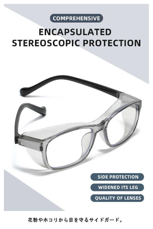 | 子供用 花粉メガネ。花粉・ホコリ・飛沫・ウイルス・ブルーライト・紫外線などから大事なお子様の目をガードするメガネです。 花粉やホコリから目を守るサイドガード。 ブルーライトを、紫外線をカットのレンズを使用していますので、在宅でも日差しが強いアウトドアでもお使い頂けます。 | |