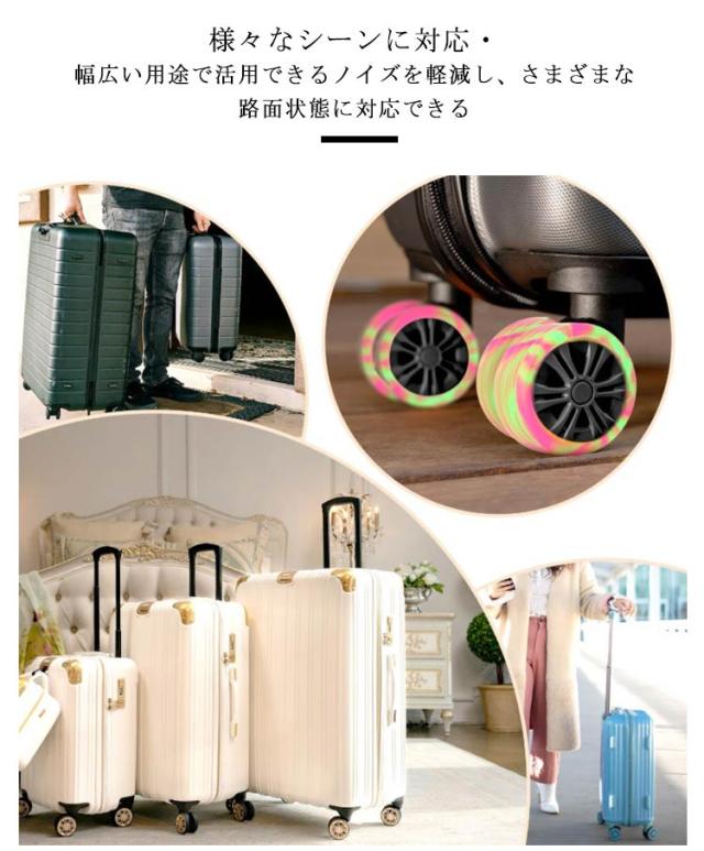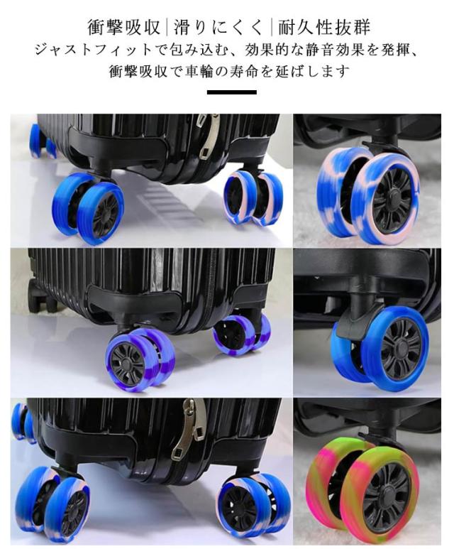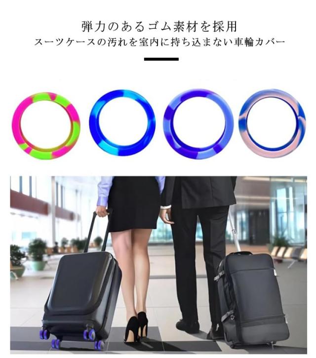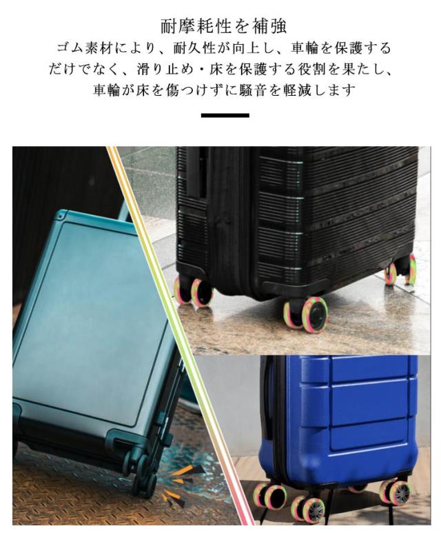 | 弾力のあるゴム素材を採用 スーツケースの汚れを室内に持ち込まない車輪カバー 衝撃吸収|滑りにくく|耐久性抜群 ジャストフィットで包み込む、効果的な静音効果を発揮、衝撃吸収で車輪の寿命を延ばします 耐摩耗性を補強 ゴム素材により、耐久性が向上し、車輪を保護するだけでなく、 滑り止め・床を保護する役割を果たし、車輪が床を傷つけずに騒音を軽減します 様々なシーンに対応・幅広い用途で活用できる ノイズを軽減し、さまざまな路面状態に対応できる | |