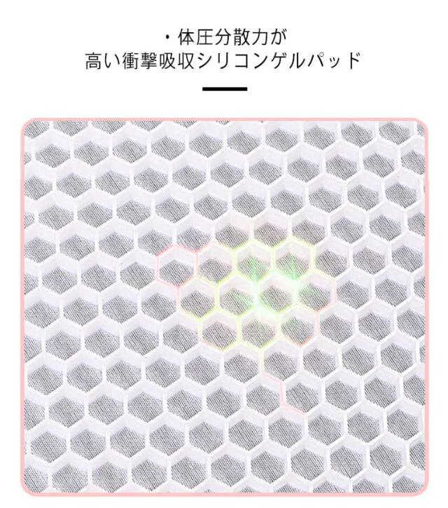 | ・おしりが痛くなりにくいゲルクッション ・クッション全体で体を支え、長時間運転しても疲れにくい ・体圧分散力が高い衝撃吸収シリコンゲルパッド ・大きく空いた無数の穴が湿気を逃し通気性抜群です ・大きな座面がシートにピッタリフィット!分厚すぎず運転に適した厚さ ・水洗いでき清潔に使用できます。乾くのも早い! ・夏場の触れない程熱くなったシートに敷くと一瞬で快適になります | |