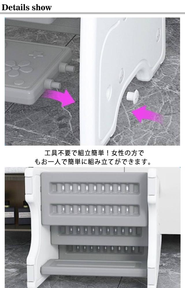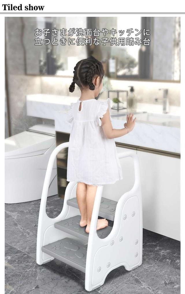 | 手すり付き2段キッズステップ。広めステップ。 お子さまが洗面台やキッチンに立つときに便利な子供用踏み台。両側手すり付き・脚裏すべり止め付き・踏み台部分すべり止め付き・幅広ステップ 丸みを帯びたデザインにしっかりと両手で握れる手すりが付いているので、上り下りする時の落下や転倒の不安がありません。 軽量で持ち運びカンタン!自分で運べるので、洗面所やトイレ、キッチンなど移動もラクラク! 工具不要で組立簡単!女性の方でもお一人で簡単に組み立てができます。 | |
