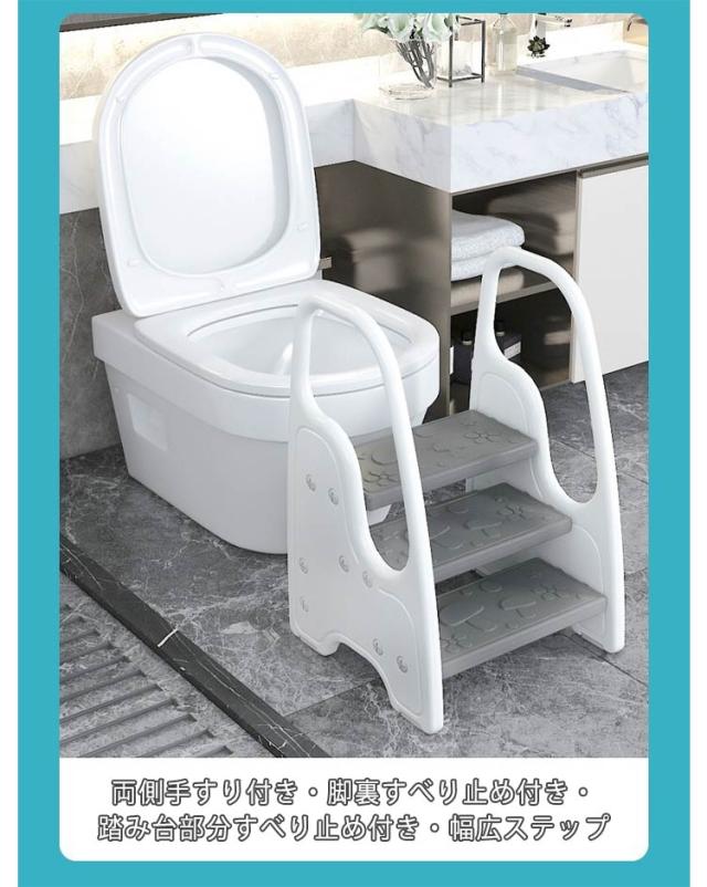 ステップ台 トイレ 幼児 簡単組立 安全 手すり付き 安定性 手洗い トイレトレーニング 2段 男の子 女の子 安定性 3段 手すり付き踏み台 足置き台 子供 滑り止め 歯磨き 踏み台 お手伝い リビング 玄関 庭 踏み台 保育園 洗面所