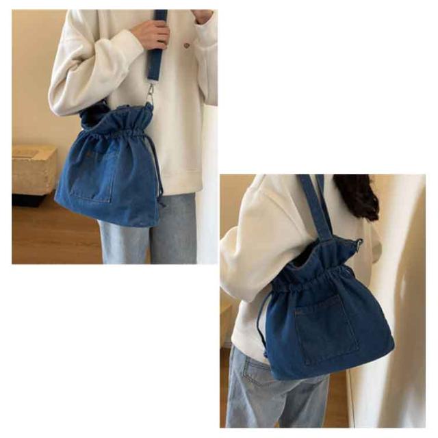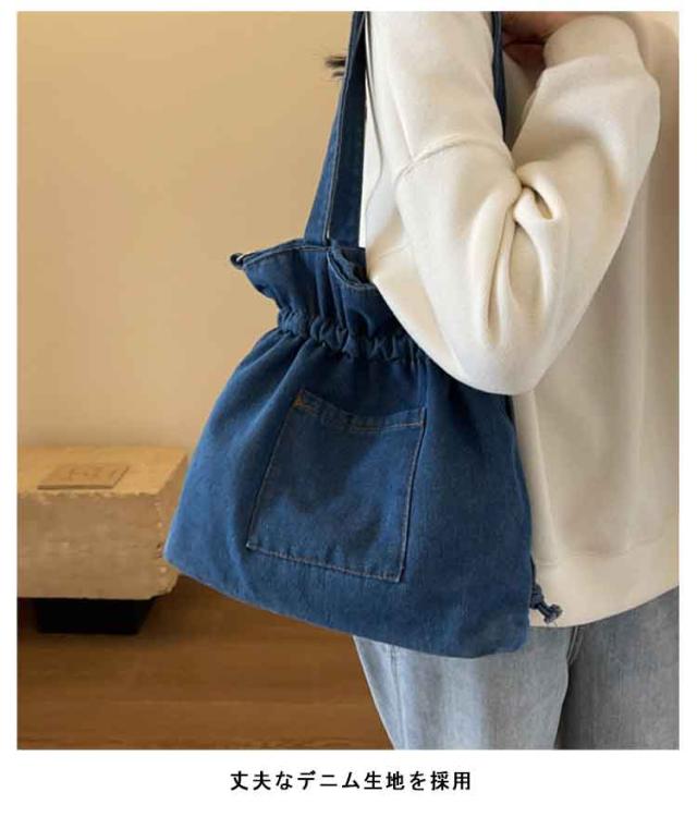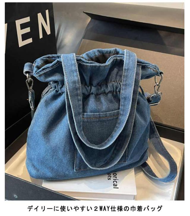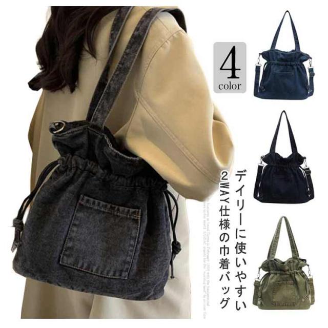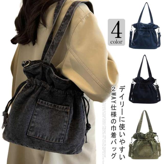 大きめ キャンバス 巾着バッグ デニム 巾着バッグ バッグ トートバッグ カバン 巾着 大容量 ショルダーバッグ A4 レディース デニムバッグ 軽量 トート 斜めかけ 肩掛け 鞄 ショルダー デニムトート 大人 カジュアル おしゃれ かわいい