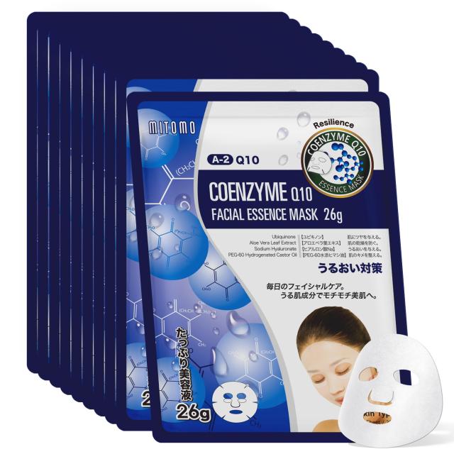 シートマスク フェイスマスク パック 10枚 コエンザイムQ10 ヒアルロン酸 日本製 送料無料 メール便 スキンケア 保湿 乾燥 肌荒れ MITOMO コエンザイムQ10フェイシャルエッセンスマスク 【MTSA00516-A-2x010】