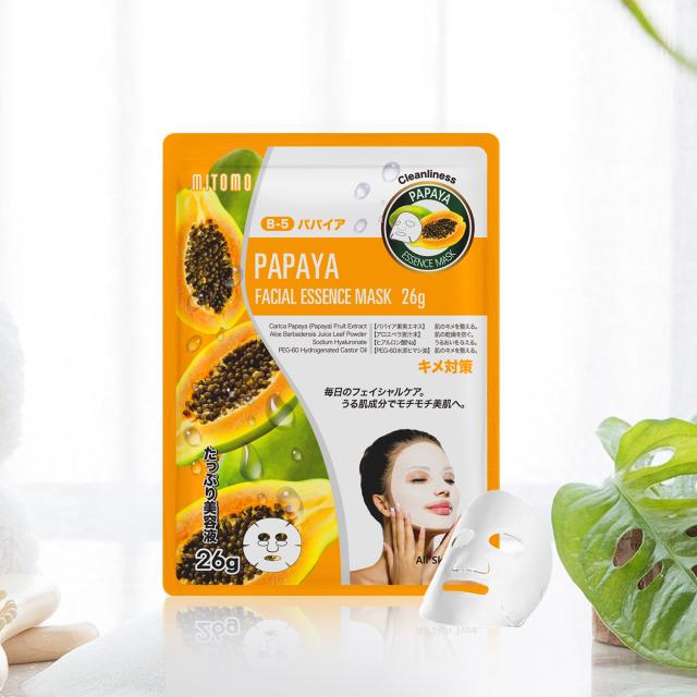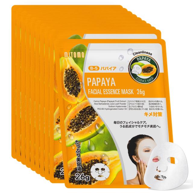 シートマスク フェイスマスク パック 10枚 パパイア ヒアルロン酸 日本製 送料無料 メール便 スキンケア 保湿 乾燥 肌荒れ MITOMO パパイアフェイシャルエッセンスマスク【MTSA00516-B-5x010】