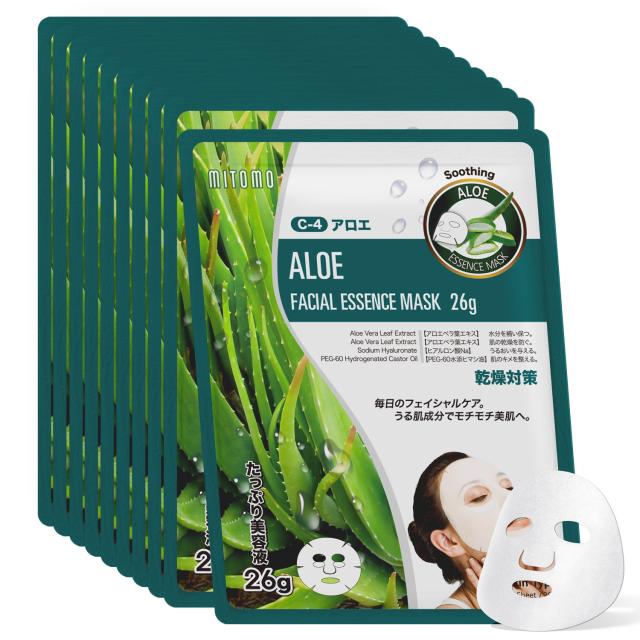 【日本製】 MITOMO シートマスク フェイスマスク パック 10枚 アロエ ヒアルロン酸 日本製 送料無料 メール便 スキンケア 保湿 乾燥 肌荒れ アロエフェイシャルエッセンスマスク【MTSA00516-C-4x010】