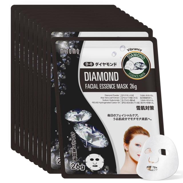 シートマスク フェイスマスク パック 10枚 ダイヤモンド粒子配合 ヒアルロン酸 日本製 送料無料 メール便 スキンケア 保湿 乾燥 肌荒れ MITOMO ダイヤモンドフェイシャルエッセンスマスク【MTSA00516-D-0x010】