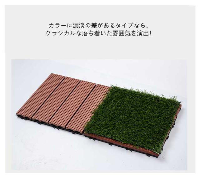 | 4辺ジョイントにより自由に連結可能。 自由自在に組み合わせできるのが最大の魅力です。 同じ色で統一すると、落ち着いた空間になり、シンプルでスタイリッシュ! 異なる色のパネルを組み合わせた市松模様もおしゃれ! カラーに濃淡の差があるタイプなら、クラシカルな落ち着いた雰囲気を演出! 材質はPE(ポリエチレン)なので、カビや虫がわきにくく、ささくれの心配もありません。 準不燃材料で、外に置いても安心です。 汚れたら水で洗い流すだけでOK! ジョイント式だから、パズルのようにはめるだけ! 女性でも簡単に装着できます。 | |