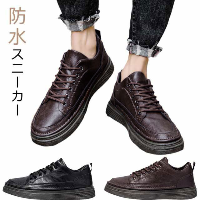 スニーカー 防水 メンズ 合皮 ローカット レースアップ 男性 紐靴 紳士靴 PU革 靴 カジュアルシューズ ビジネススニーカー ウォーキングシューズ おしゃれ 通勤 通学