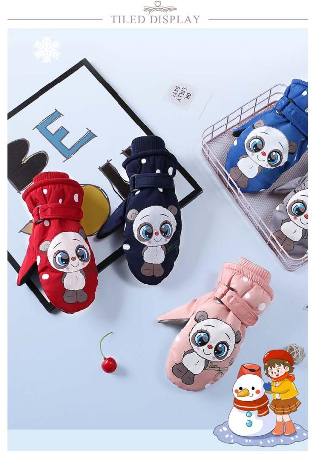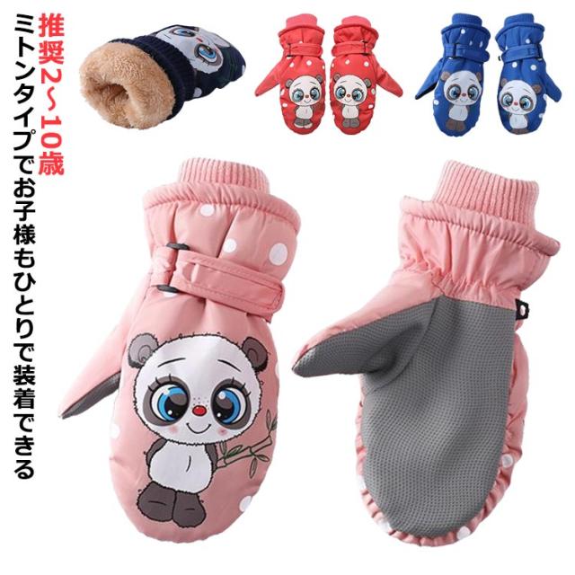 キッズ 防水 スノーグローブ ミトン パンダデザイン ミトンスノーグローブ スキーグローブ 子供用 キッズ 防寒 撥水 男の子 女の子 手袋