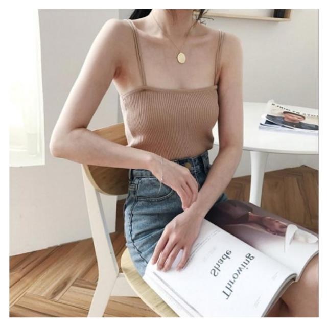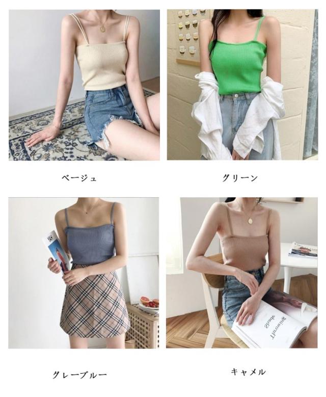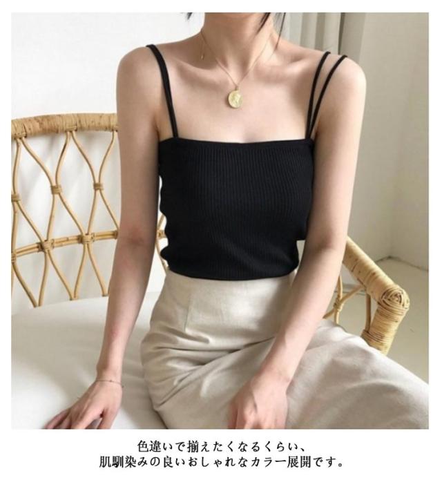 送料無料 キャミソール レディース インナー タンクトップ ショート丈 ルームウェア リブ ダブルストラップ レディース トップス ブラウス ニット ノースリーブ 袖なし アンダーウェア インナーキャミソール
