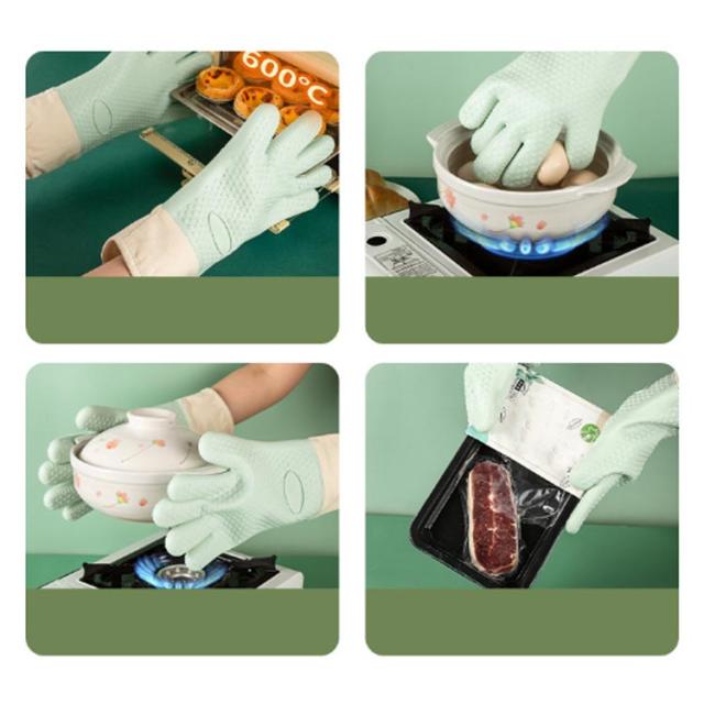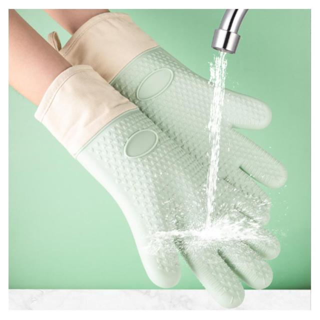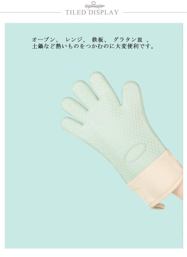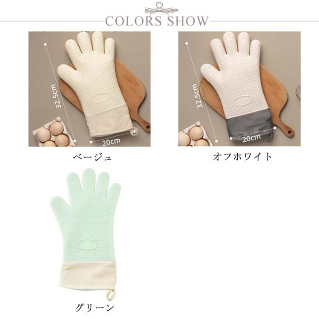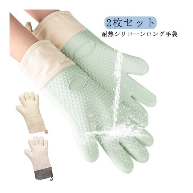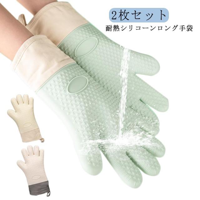 耐熱 キッチン手袋 5本指 ミトン 長め 2枚セット シリコンミトン 鍋つかみ オーブンミトン 鍋掴み 左右兼用 クッキンググローブ 台所用手袋 炊事手袋 調理用品 キッチン用品 キッチン雑貨