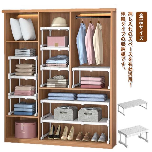 押し入れ 伸縮 収納棚 収納ラック クローゼット 押入れ整理棚 幅伸縮 押入れ収納 押入れラック 衣類収納 シンク下ラック 食器棚 置き型 スライド式 高耐荷重 積み重ね可能 省スペース 洗面所 キッチン 整理ラック シューズラック 全16サイズ 送料無料