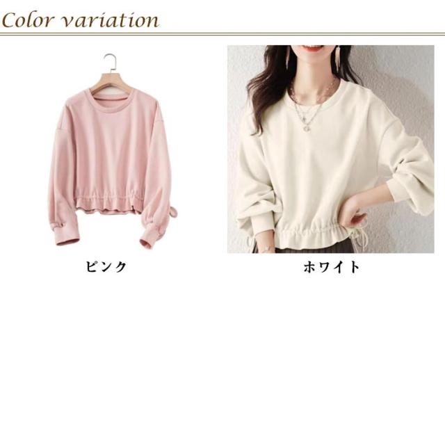 | クシュっと絞られた裾のギャザーデザインがワンポイントのトレーナー。 裾のリボン結びをする位置で絞り具合も調節する事が可能、気になる腰周りをカバーしてくれます。 シンプルで主張のないデザインなので、ボトムス次第でコーデの印象は360°変更することができます。 身幅はゆったりルーズなワイドシルエット×短丈でスタイルアップ効果抜群。 ショート丈なので、ハイウエストボトムと合わせるのがおすすめのデザインになっています。 | |