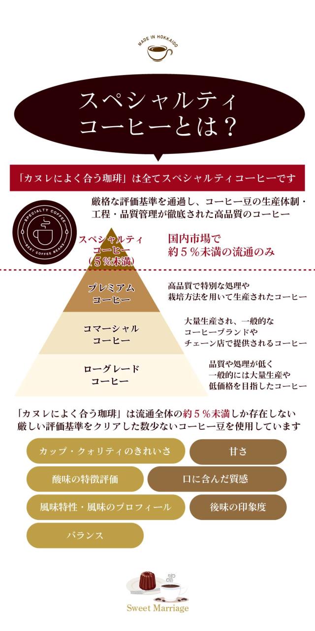 | 商品説明 | スイーツ店とコーヒー専門店が共同開発した 「北海道二段階熟成カヌレ」の風味を最大限引き立てるスペシャルティ珈琲です。 カヌレの豊かな甘みと、香り高い自家焙煎コーヒーとの相性は格別。贅沢な味わいで心が満たされる至福の時間を心ゆくまでお過ごしください。 |