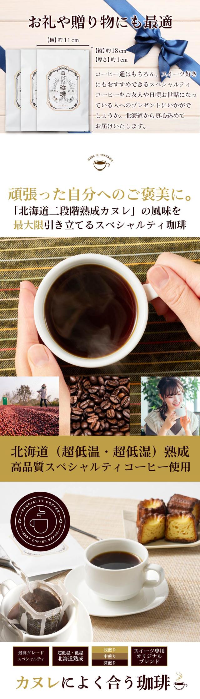 カヌレによく合う珈琲 10g 深煎り 中煎り 浅煎り スイーツ専用 ドリップパック コーヒー 個包装 飲み比べ 北海道 プチギフト