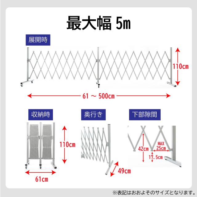 アルミ伸縮フェンス 最大幅5m 門扉 フェンス アコーディオンフェンス バリケード アルミ おしゃれ キャスター エクステリア 間仕切り 片開き 目隠し 屋外 防犯 リフォーム ガレージ 伸縮 3m 4m 5m ペットゲート ペットフェンス SSF500