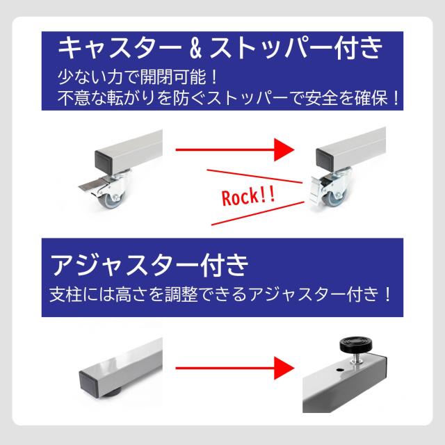 ●キャスター付きなので軽い力で楽々開閉!高さを調整できるアジャスター付き!
