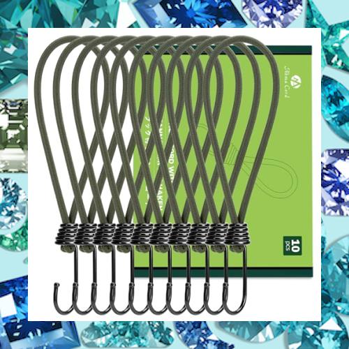 【材質とサイズ】コード:天然ゴム内芯・ポリプロピレン外皮、UV耐性、耐摩耗性及び高弾力性;フック:ステンレス製で錆びにくい、変形しにくいです。このストレッチコードの引張強度は60kgに達しています。フックを含むストレッチコードの全長は23cm、コードの直径は6mmです。
