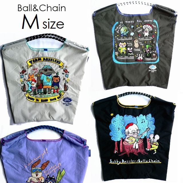 正規品 BALL&CHAIN ボールアンドチェーン バッグ エコバッグ 2way Mサイズ BOBBY DAZZLER ボビーダズラー B.RABBIT B.UNIT B.BIKE 猫 ネコ ウサギ キリン パンダ バンド バイク ギター SORTS