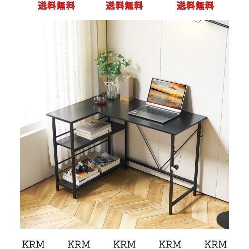 MIYOKI L字デスク パソコンデスク 幅110×奥行48×高さ75cm 左右入替え PCデスク l字型 コーナーデスク ゲーミング 収納ラック付き 棚板