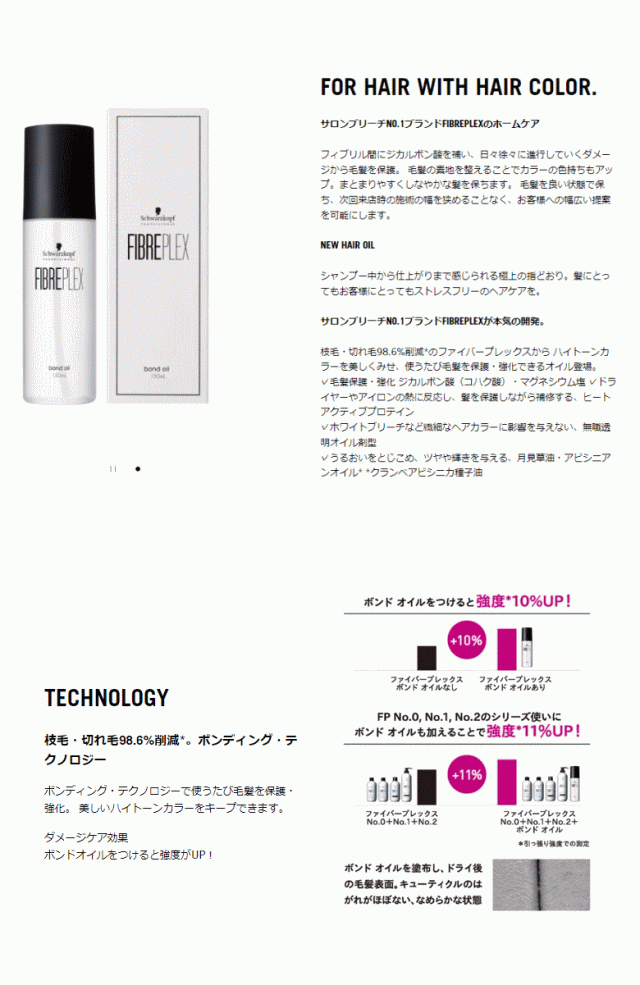 枝毛・切れ毛98.6%削減*のファイバープレックスから ハイトーンカラーを美しくみせ、使うたび毛髪を保護・強化できるオイル登場。