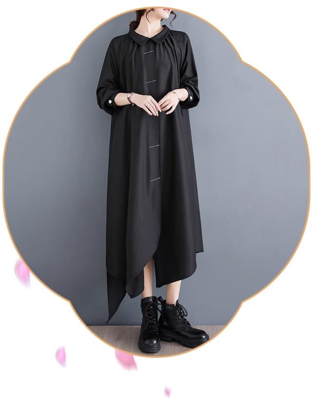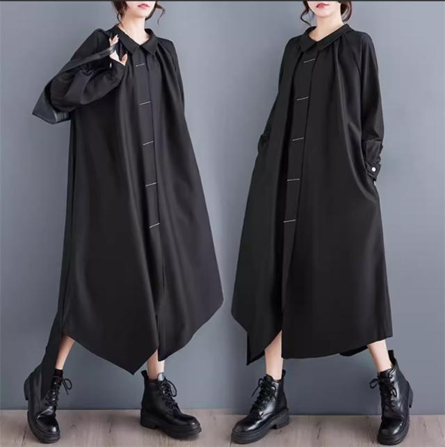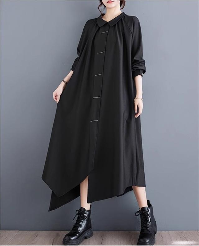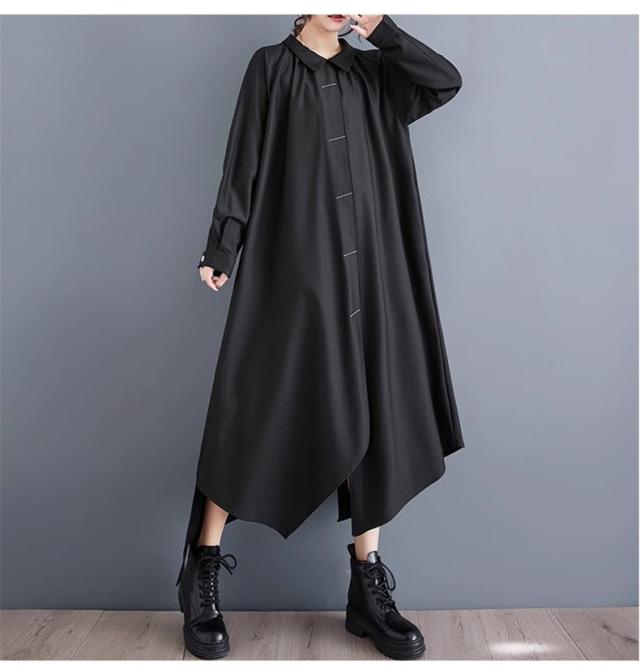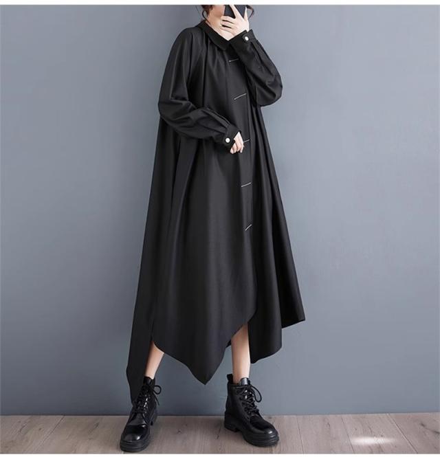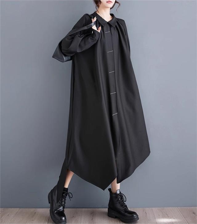 ロングワンピース 春秋 シャツワンピース レディース 不規則 長袖 無地 スタイルよく見せてくれる優秀アイテム 新作 個性的 シンプルなデザイン お洒落