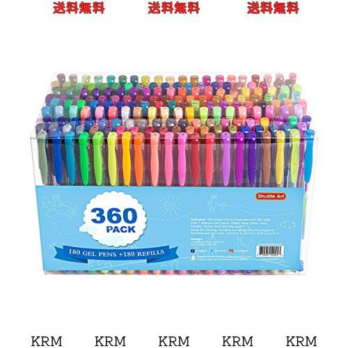ジェルペン360本セット、シャトルアート 180色ゲルペンセットに加えて、180色リフィル、大人の塗り絵、落書き、描画アートマーカーに最適。