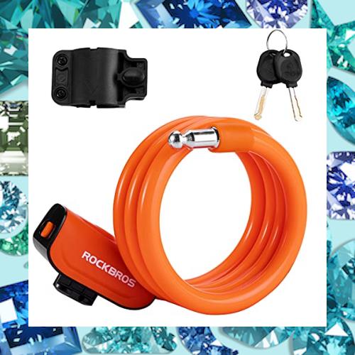 ROCKBROS(ロックブロス)自転車 鍵 ロック ワイヤーロック 盗難防止 高切断対抗 横断面直径約13mm 長さ約1100mm 鍵式 携帯便利 錆びにくい