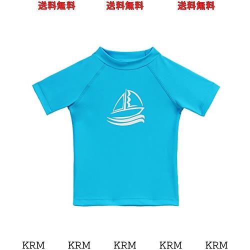 [ESTAMICO] キッズ 半袖 Tシャツ ラッシュガード UVカットUPF+50 男の子 水着 (スカイブルー, 110cm)
