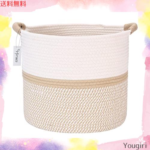 Hinwo 収納バスケット コットンロープバスケット 洗濯かご ランドリーカゴ ランドリーバスケット 持ち手付き 折りたためる 洗濯物入れ 大