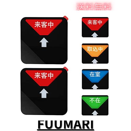 【使用】「来客中」、「取込中」、「在室」と「不在」の間にスライドして切り替え可能。会議室、プライベート会場などに適用。防水性、耐久性があり、取り付けも簡単。