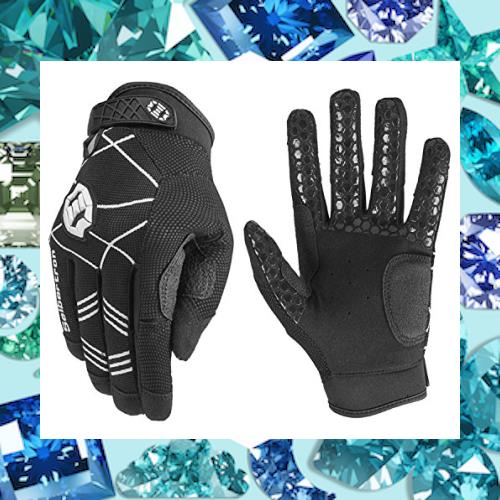 グローブのサイズは手のひらの周囲幅によって測っています。 左のイメージを参考にしてサイズを選択してください。アンチスリップシリコンフィンガープリント使用のため、グリップが優れます。手首にベルトが付いているので、着脱は簡単です。パームにgelパッド使用し、衝撃吸収できます。手のひらと指部分に通気孔あります。