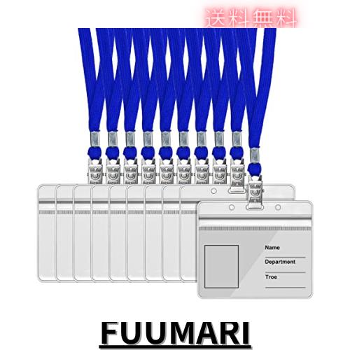 Chouiery ネームホルダー 35枚入れ ID カード ホルダー ネックストラップ 横型 タイプ ブルー 吊り下げ 名札 ストラップ 名札 ホルダー