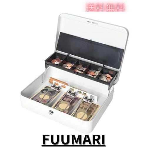 ◆商品名:Jssmst(ジェスマット) 手提金庫 キーロック式 会計用コインケース 3つスプリングクリップ 紙幣整理 金属製 30x24x8.8cm(白 キーロック)
