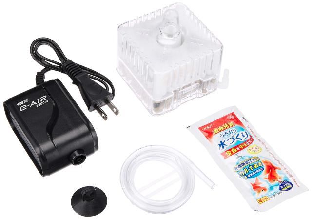 フィルター(ロカボーイ S)とエアーポンプが入った、幅39cmまでの水槽の飼育用に、補助フィルターとしても最適!な用品セット。 水をキレイにするぶくぶくフィルター ロカボーイSとエアーチューブ、エアーポンプがセットになった水中フィルターセットです。 セット内容:エアーポンプ(イーエアー1000SB)、水中フィルター(ロカボーイ S)、エアーチューブ、カルキぬき、キスゴム