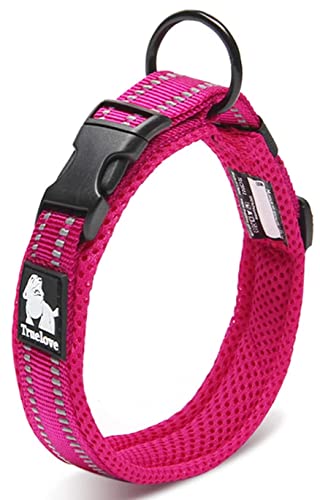 3M反射ステッチで夜道の散歩も安心、機能面でもおすすめです。柔軟性、耐久性、軽くて弾力性に優れたナイロン素材の犬用首輪、裏地に換気口がある。