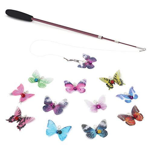 SONGWAY 猫おもちゃ 蝶々 ねこじゃらし 12個チョウチョ 1本釣り竿付き 13点セット